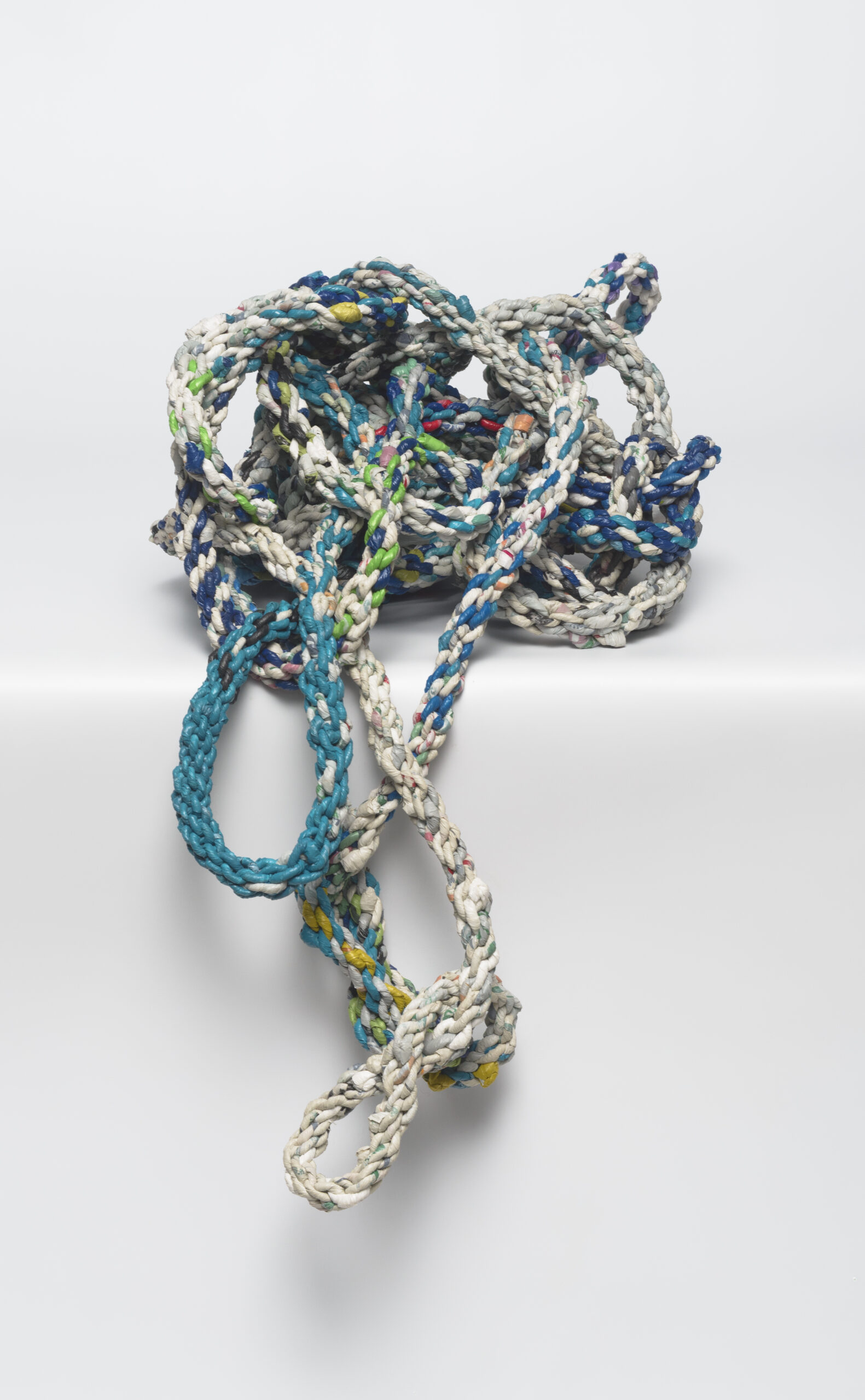 Over eight meters long, the rope is woven from local plastic shopping bags using a peanut butter jar lid as a loom. I wove this rope while grasping for sanity and exploring the archival process of forgetting.