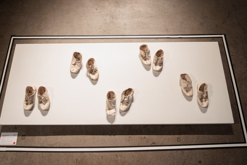 Matikinca won the coveted title for her work titled Ndiziphiwe –They were given to me, a ceramic installation about underprivileged learners who wear school shoes that are handed down to them by their older siblings or family members. By immortalising these shoes through the ceramic slip-casting method, they have been given a new purpose. This process also enables the artist to capture the essence of the used shoes, including every mark, scratch and hole. As ceramic sculptures, the shoes have been symbolically restored, but are also very fragile and breakable. This fragility is a metaphor for the precarity of the public schooling system of our country, where black South African learners are subjected to sub-standard education.