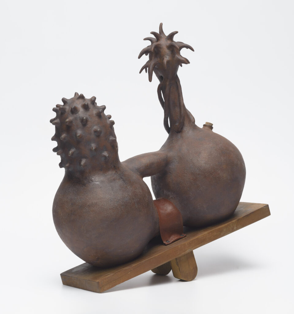 In his statement about his work, Van Eck explains: “The ceramic artwork emulates the rhythmic patterns of breath. Two whistles positioned on opposite sides “speak”, one a cry of liberation and joy, the other a low, gentle echo of contemplation and unseen turmoil. Water, the essence of life, gives life to this artwork, offering it a voice through its gentle flow from one state to the next. It provides comfort and the promise that even in the darkest moment, hope can rise, a whisper becoming a triumphant cry of defiance”.