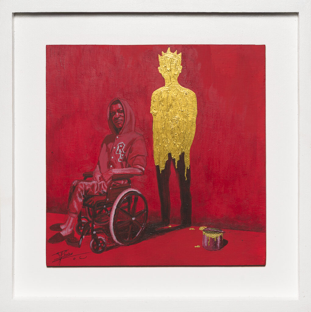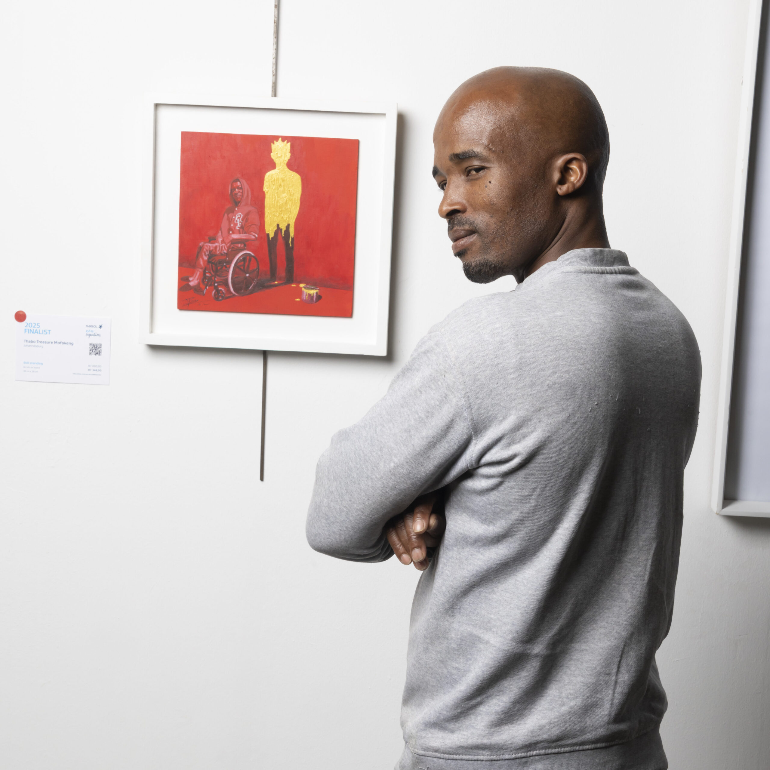 Thabo Treasure Mofokeng (39) from Johannesburg, a merit winner in 2023, was announced as the runner-up for his painting Still Standing and receives R25 000. The work was inspired by the resilience and courage of his neighbour, who, despite being paralysed by a gunshot wound, radiates a spirit like gold. His determination to live life to the fullest, without letting physical disability define him, is a testament to the human spirit’s capacity for strength and adaptability. “This piece is a tribute to my neighbour’s inspiring spirit and a celebration of the human capacity for resilience, hope, and determination,” added Mofokeng.
