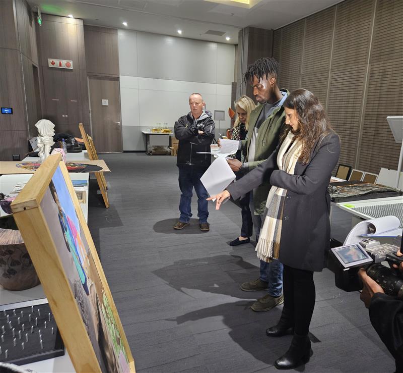 Over a four-week period, Sasol New Signatures Chairperson Pfunzo Sidogi, Sasol Art Curator Cate Terblanche, and Nandi Hilliard of the Association of Arts, Pretoria visited eight regional collection points, joined at each by respected local art experts.